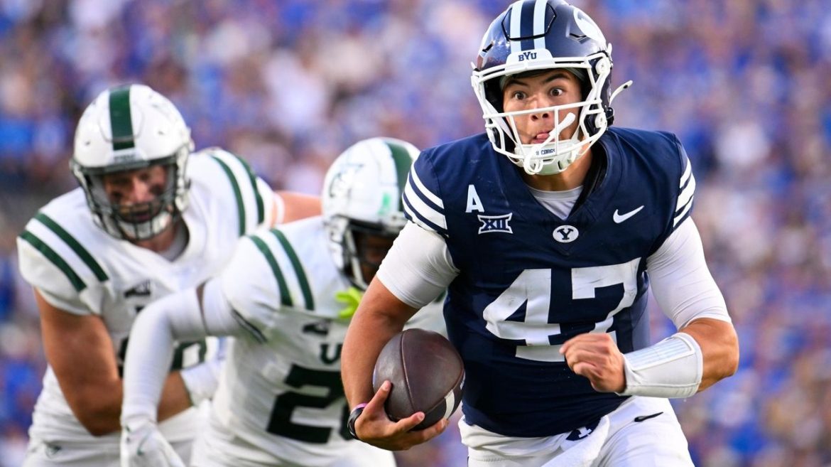 BYU (1-0) churned out 468 yards and five touchdowns on the ground. The Cougars averaged 9.8 yards per carry, and 14 different players had at least one rush. LJ Martin led the way with 131 yards on eight carries.