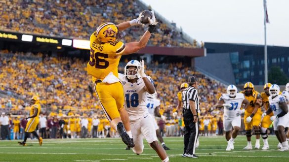 Minnesota: The Gophers soft-launched their two-way deployment of sophomore safety Koi Perich, who took a handful of snaps on offense and caught Lindsey’s first pass for 12 yards. Perich, a second-team preseason AP All-America pick, had two tackles on defense and four fair catches on punts with one 18-yard return.