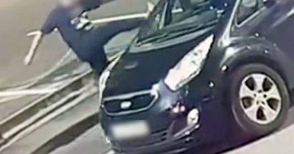 Video footage revealed how a stranger pulled, kicked and yanked the wing mirror off the Kia Venga as it was parked up on Tennant Street.