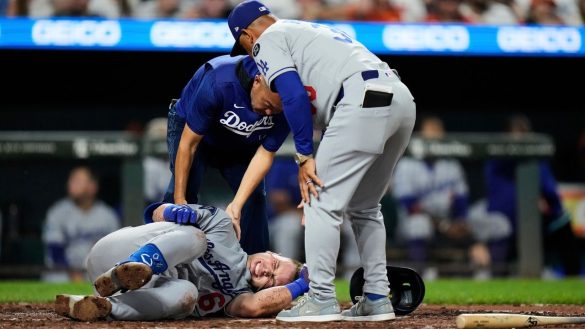 Manager Dave Roberts said Rushing was in rough shape after the baseball hit the inside of his right knee. The catcher was seen on crutches in the clubhouse after the game.