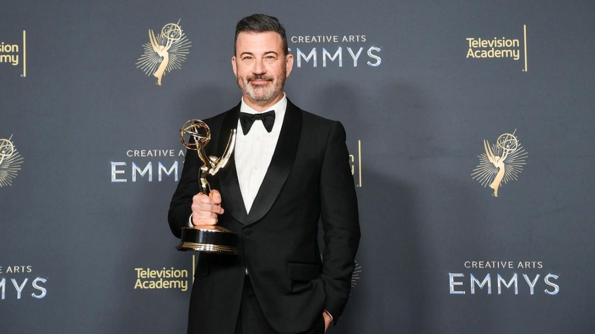 Jimmy Kimmel, who has hosted both the Oscars and the Emmys multiple times, was here to accept his fourth Emmy, for best host of a game show for his work on “Who Wants to Be a Millionaire.”