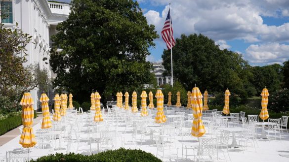 The dinner will be held in the Rose Garden, where Trump recently paved over the grassy lawn and set up tables, chairs and umbrellas that look strikingly similar to the outdoor setup at at his Mar-a-Lago club in Florida.