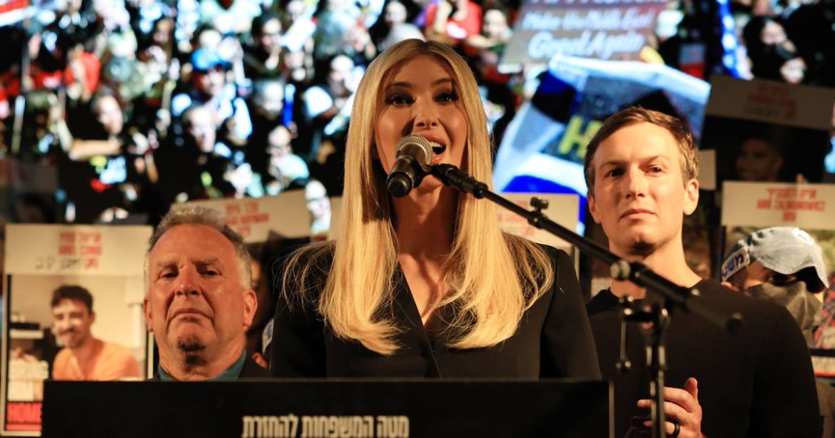 Prime Minister Benjamin Netanyahu faced jeers from some quarters as Witkoff and Trump’s son-in-law Kushner took to the stage at the weekly rally, joined by Ivanka.