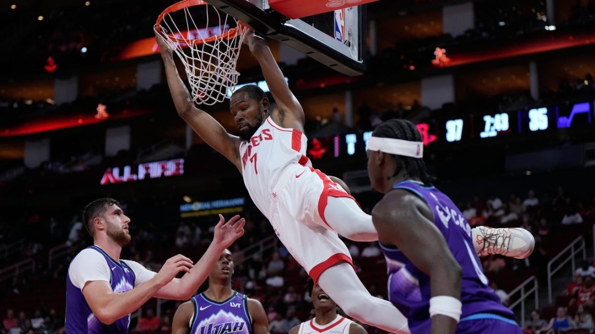 Durant joined the Rockets in July in a blockbuster trade that sent Jalen Green and Dillon Brooks to Phoenix. The 15-time All-Star and four-time Olympic gold medalist joins a young team that aims to take another step this season after finishing second in the Western Conference in the regular season before losing in the first round of the playoffs.