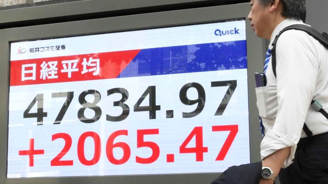 The Nikkei 225 index was up 4.3% at 47,710.09 early Monday, while Hong Kong’s Hang Seng index edged 0.1% lower to 27,119.36.
