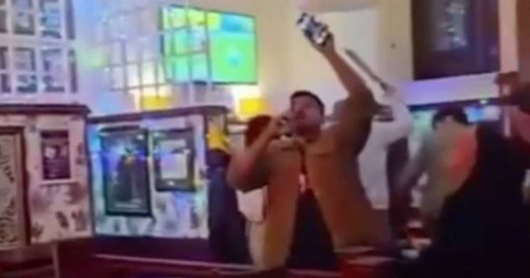 Remarkably, the savage assault went unnoticed by the merry pub-goers who continued to embrace and sing John Denver’s 1971 hit ‘Take Me Home, Country Roads’ into a karaoke microphone.
