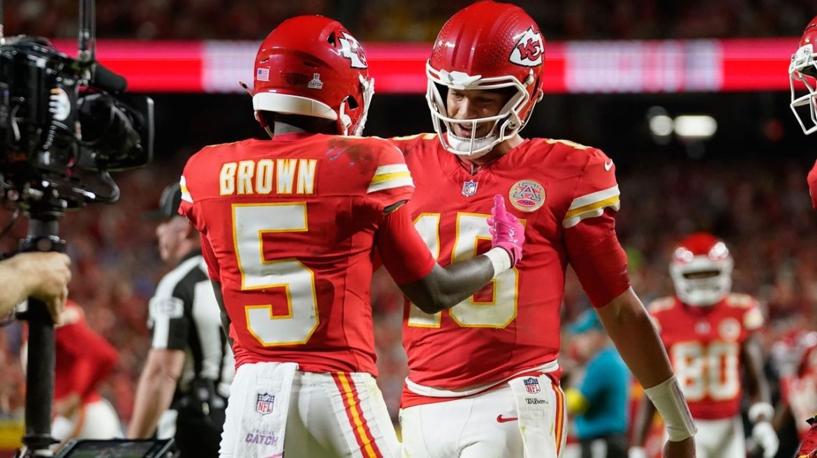 Marquise Brown had two touchdown receptions and Xavier Worthy had another for the Chiefs (3-3), who played a near-flawless game — no penalties, no turnovers — one week after a mistake-strewn, last-second loss at Jacksonville.