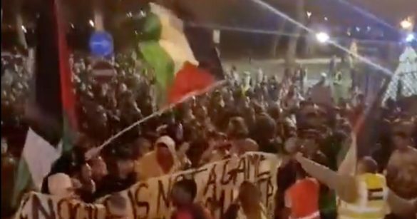 A protester invaded the pitch wearing a ‘Free Gaza’ T-Shirt during Israel’s 5-0 defeat in Norway last Saturday. Thousands of pro-Palestine protesters were present in Oslo.
