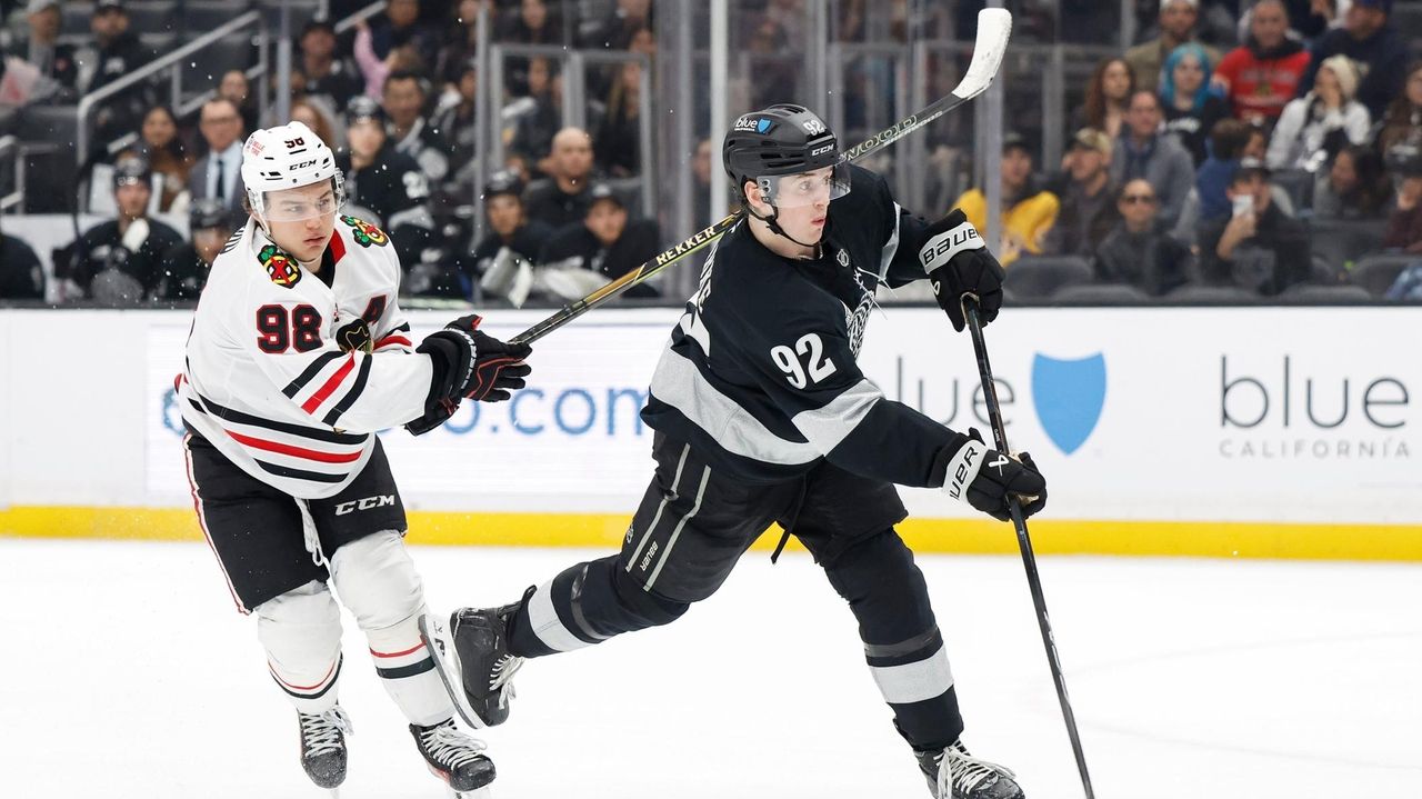 LOS ANGELES — Brandt Clarke scored twice to help Los Angeles break out of an offensive funk, Darcy Kuemper made 23 saves and the Kings beat the Chicago Blackhawks 6-0 on Saturday night to split a two-game set.