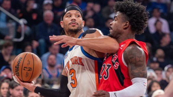 The Knicks went ahead 48-24 with 10:19 left in the second quarter, but a 22-3 Toronto run cut their lead to five. The Knicks put together a 16-1 run in the third quarter for an 86-68 lead, and the Raptors never got closer than 12 again.